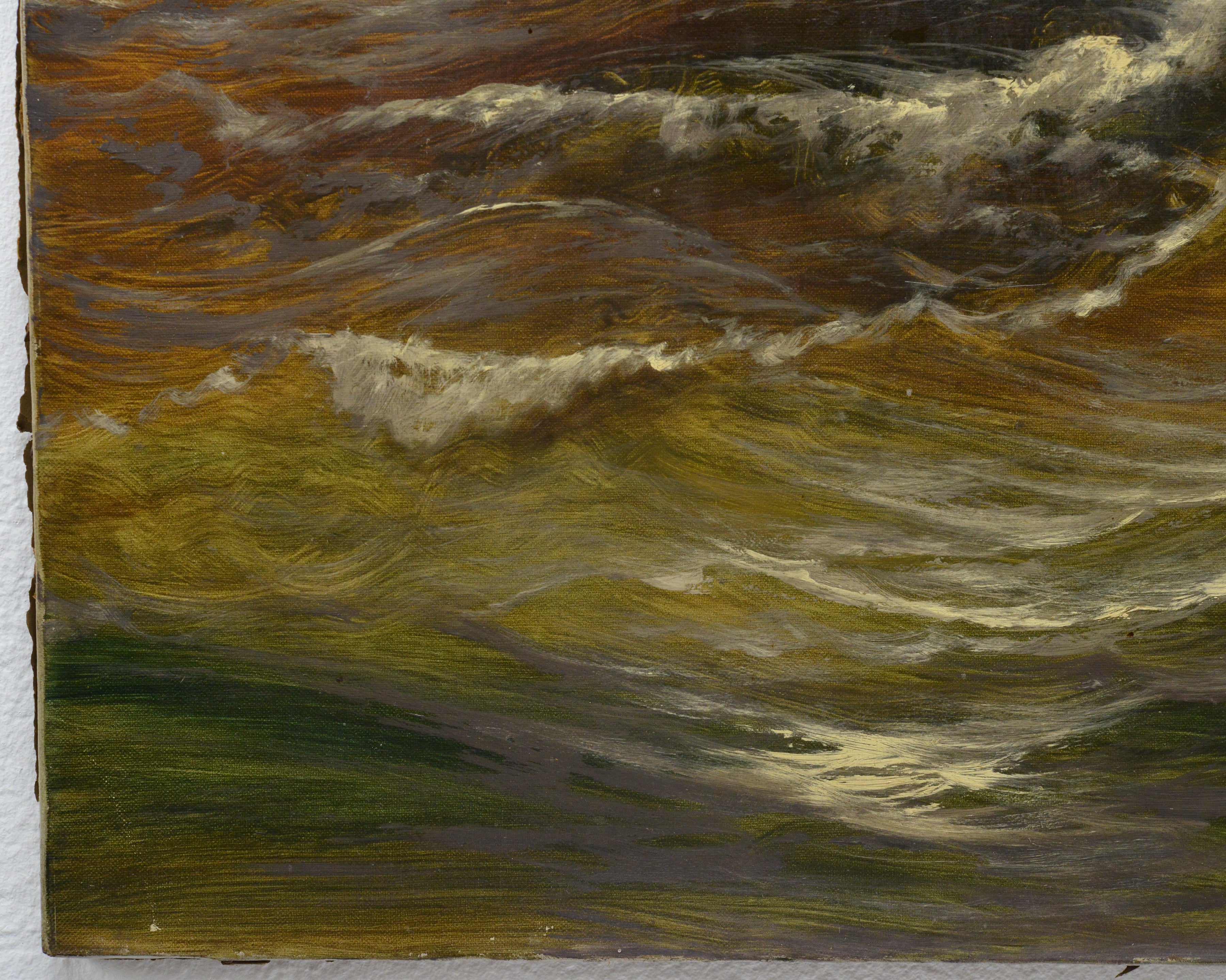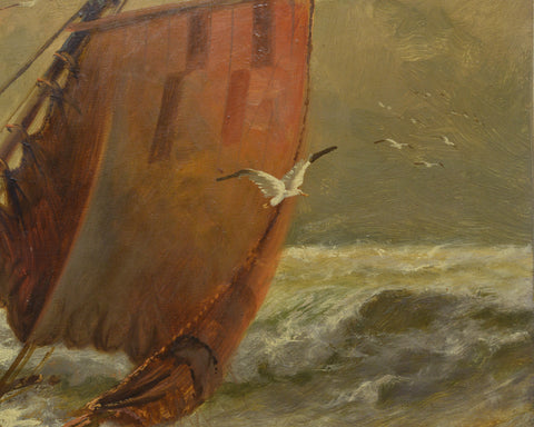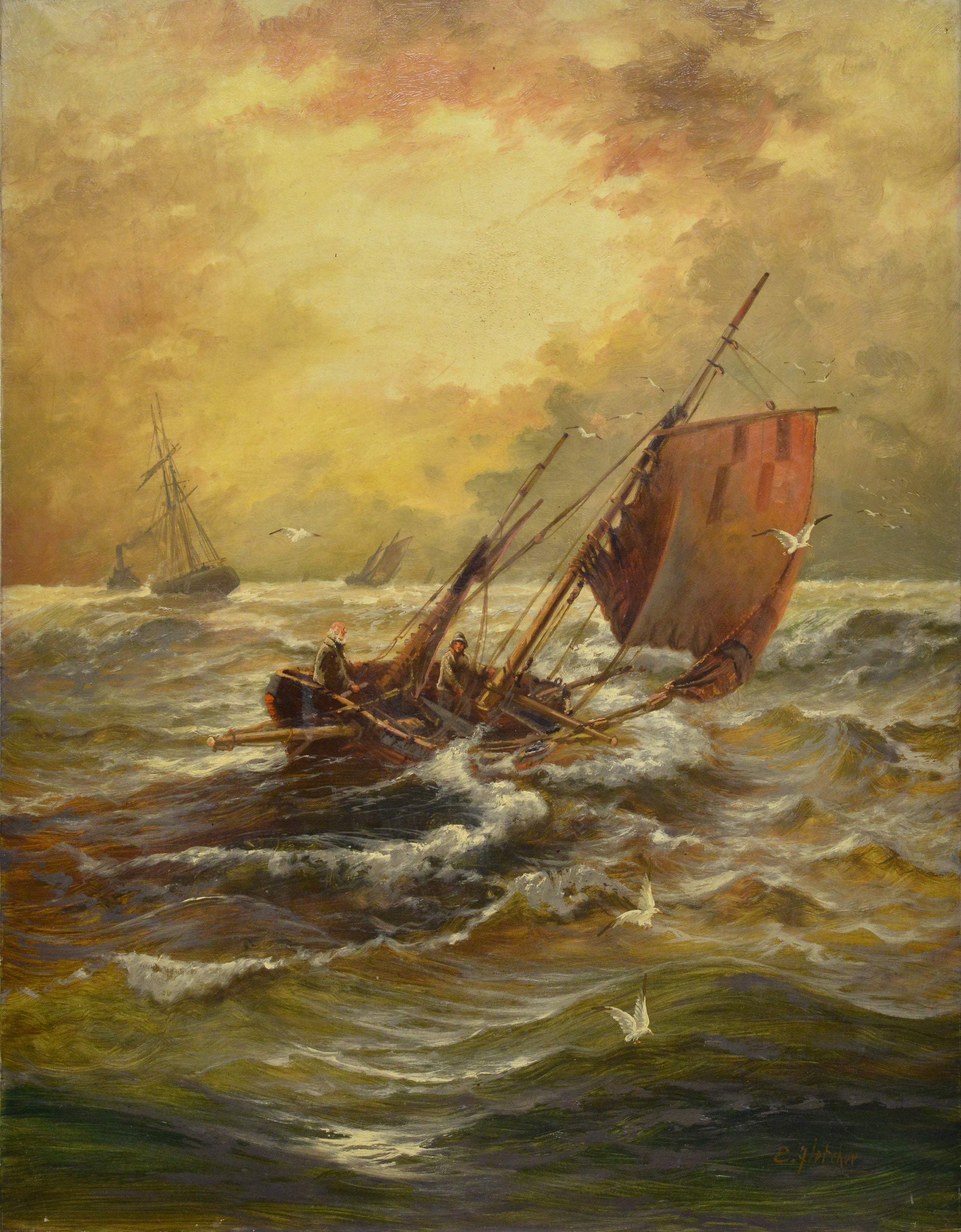 19th Century British Seascape Oil Painting of Fishermen Sailing in Stormy Seas