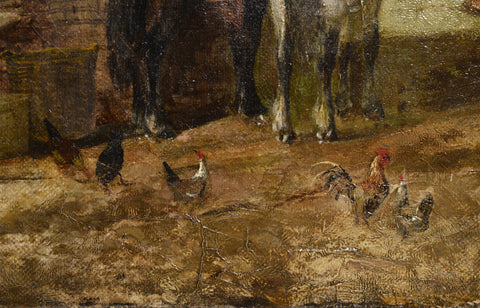 19th Century Victorian British Oil Painting Genre Scene Roadside Inn Hampshire