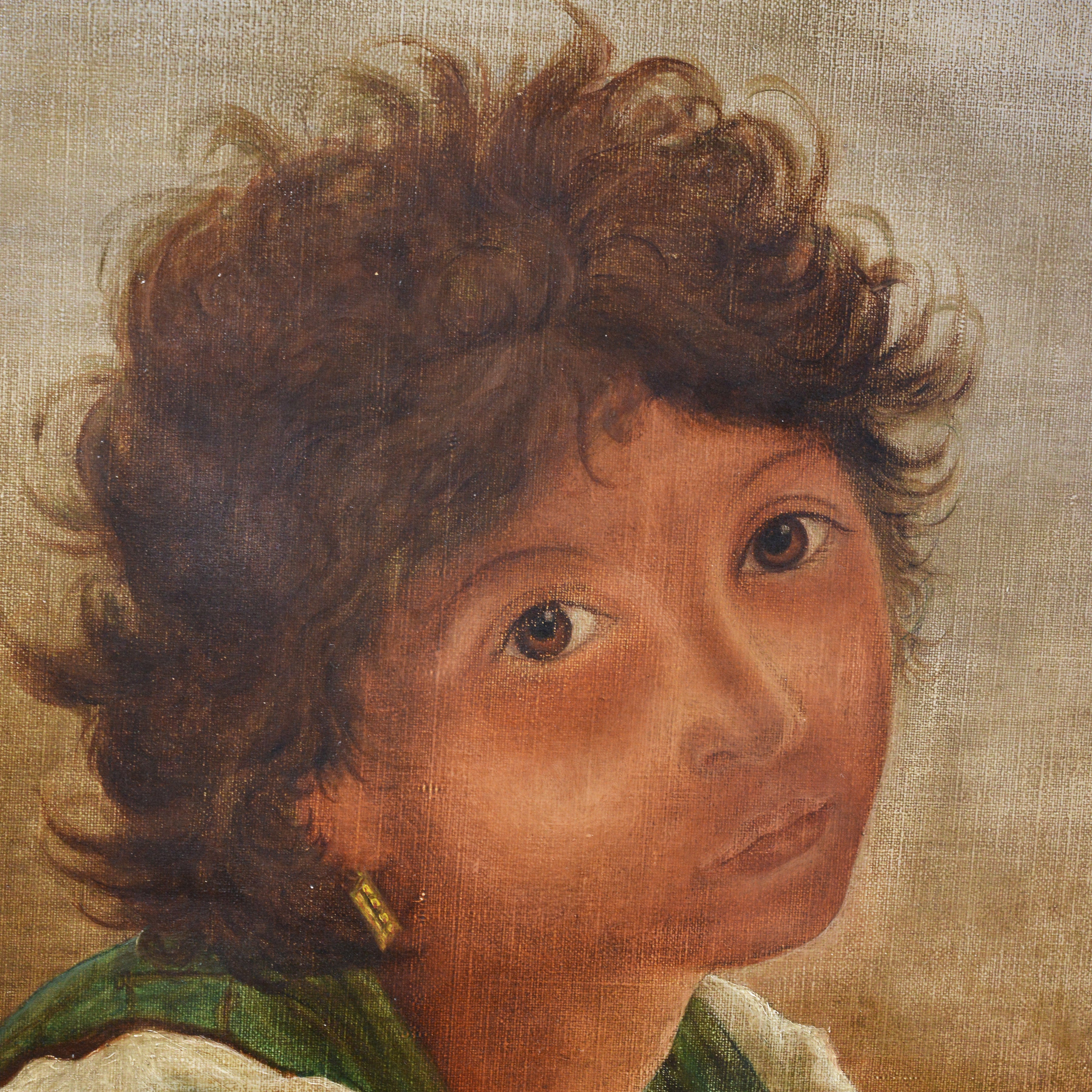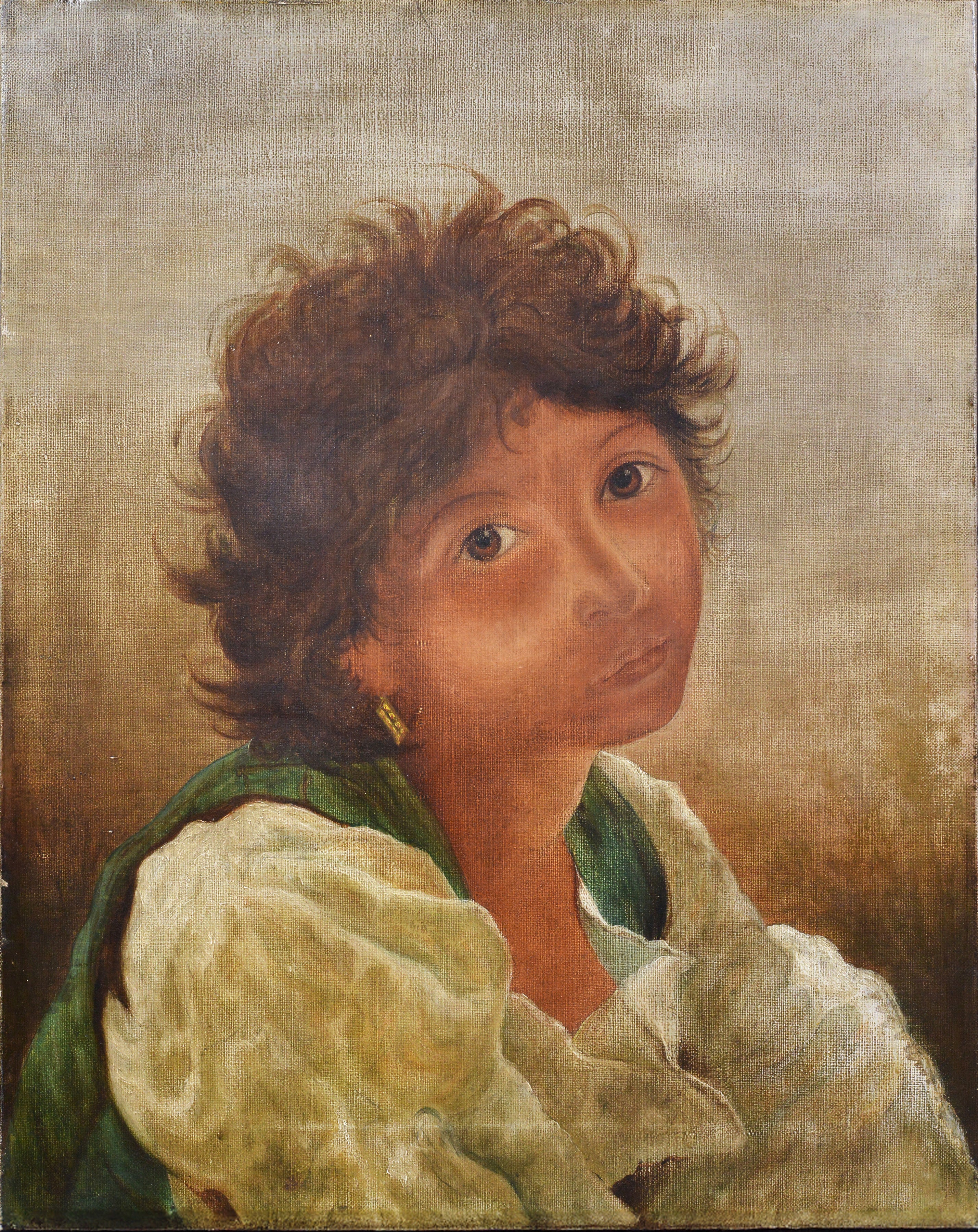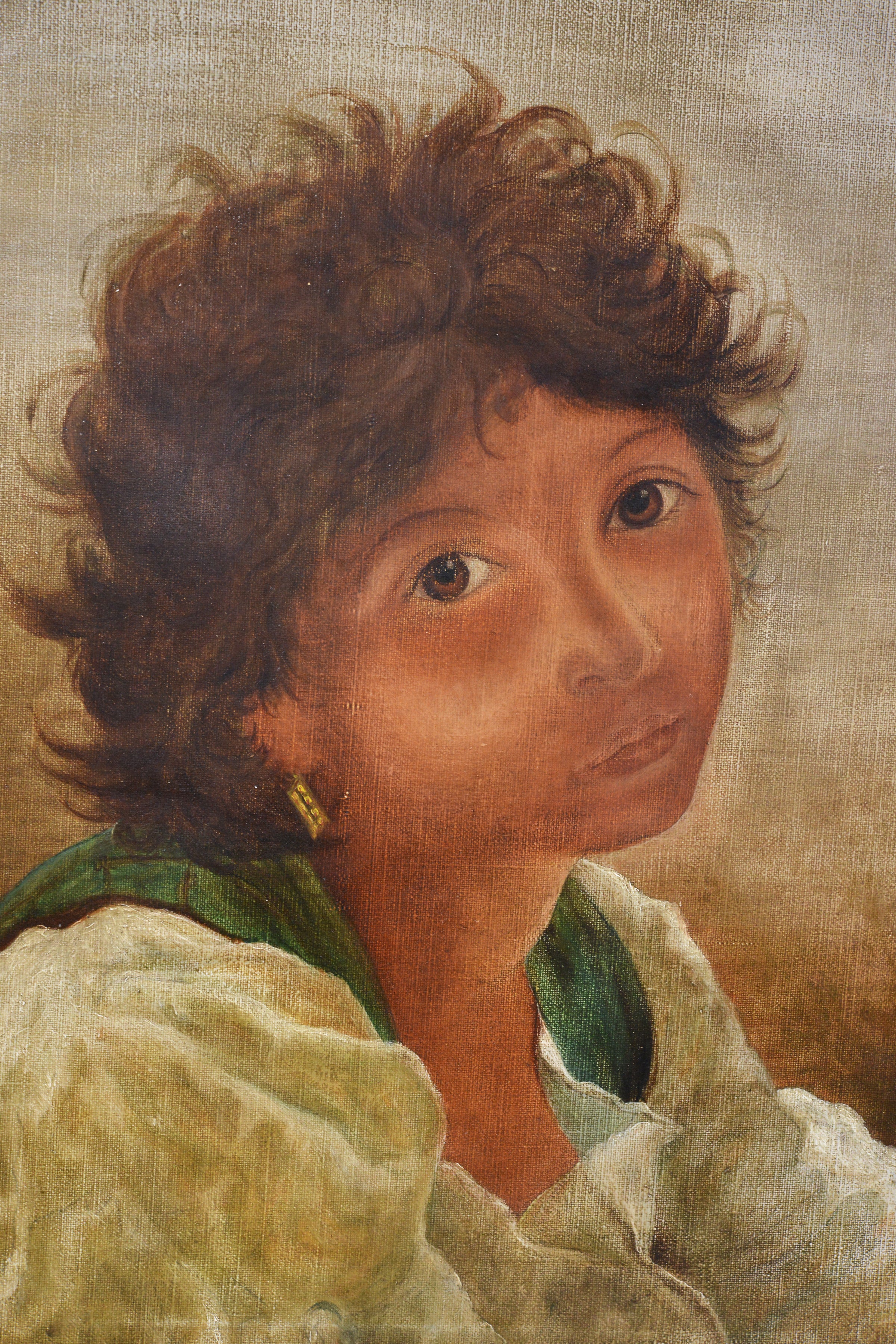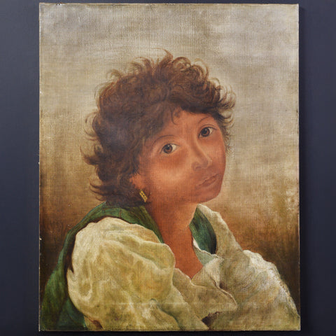 Antique 19th Century European Romantic Oil Painting Portrait Young Gypsy Girl