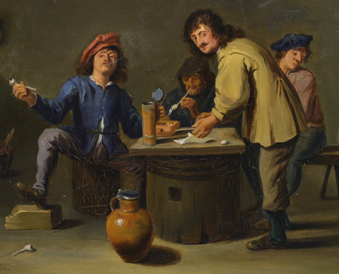 Artist: Per Collijn (Swedish, 1878-1961), signed lower left. After David Teniers the Younger's (1610-1690) "Tavern Scene with Pipe-smokers" at the National Museum, Stockholm.