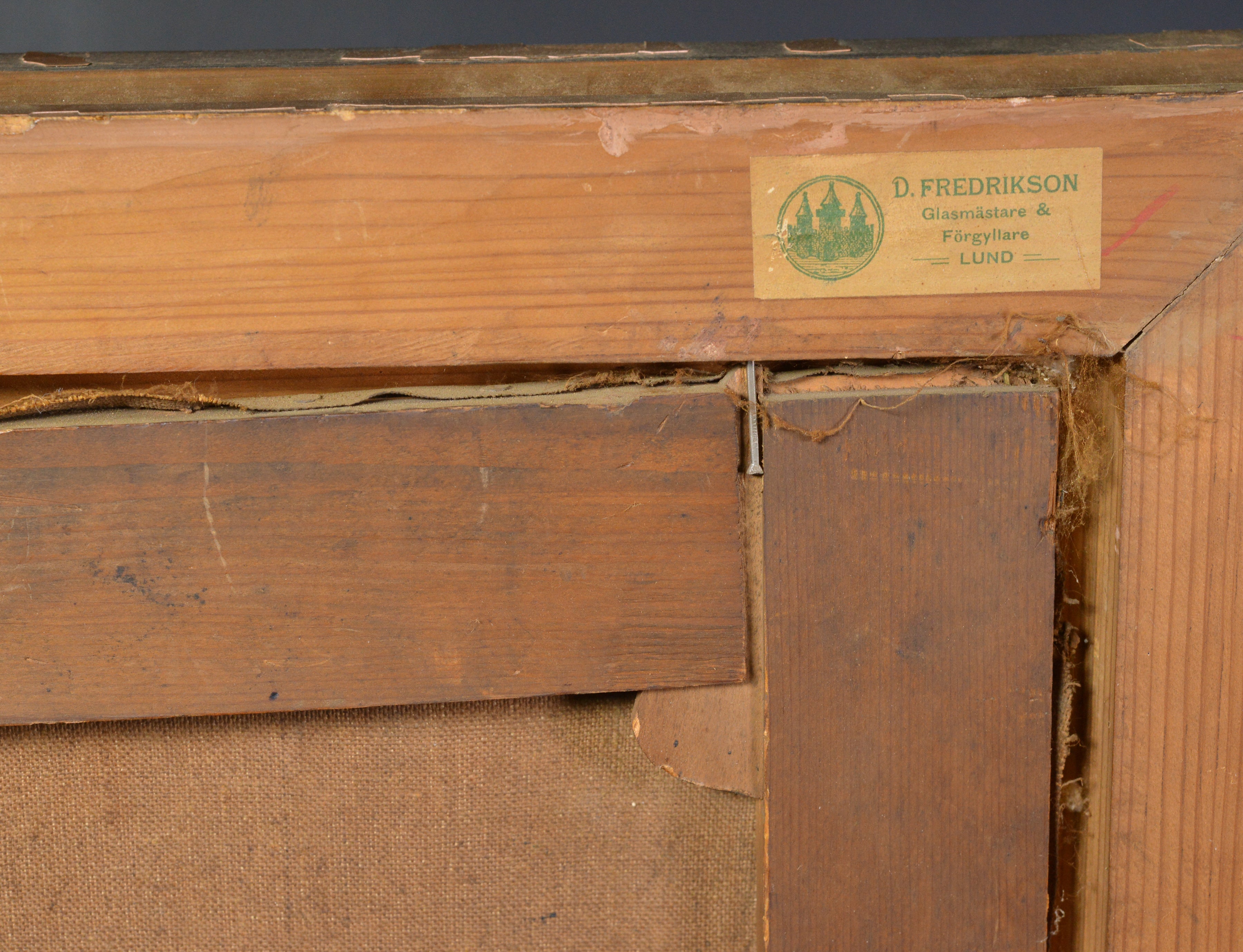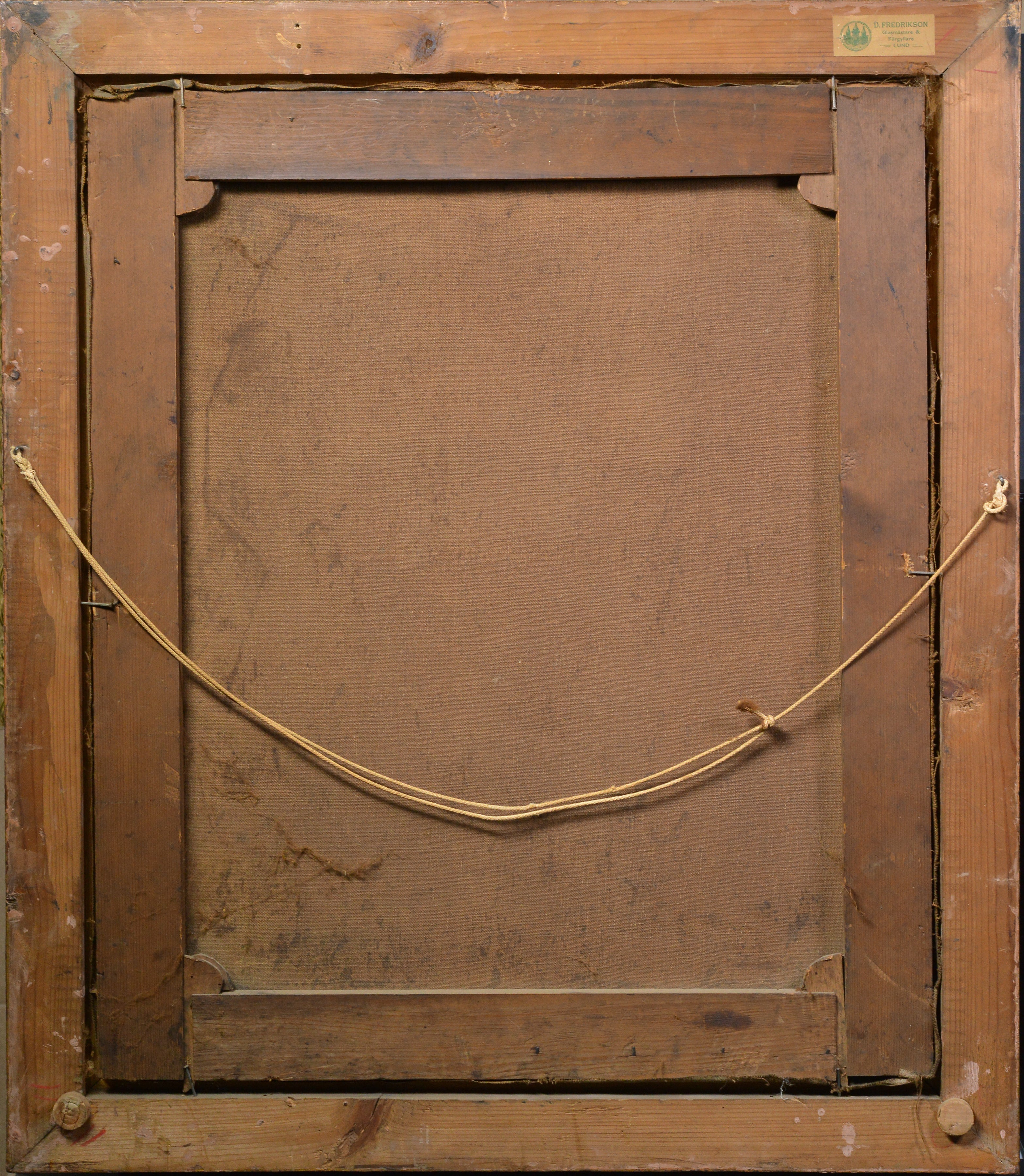 Frame: Original period frame with age wear and losses, Swedish framer label from D. Fredrikson, Lund