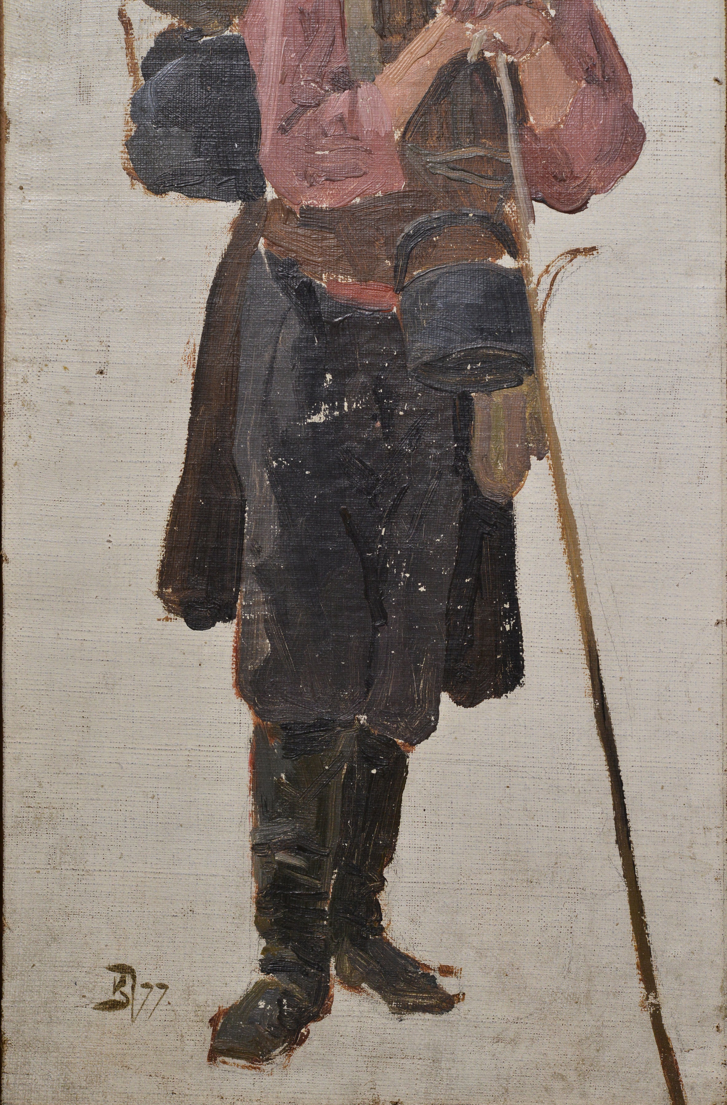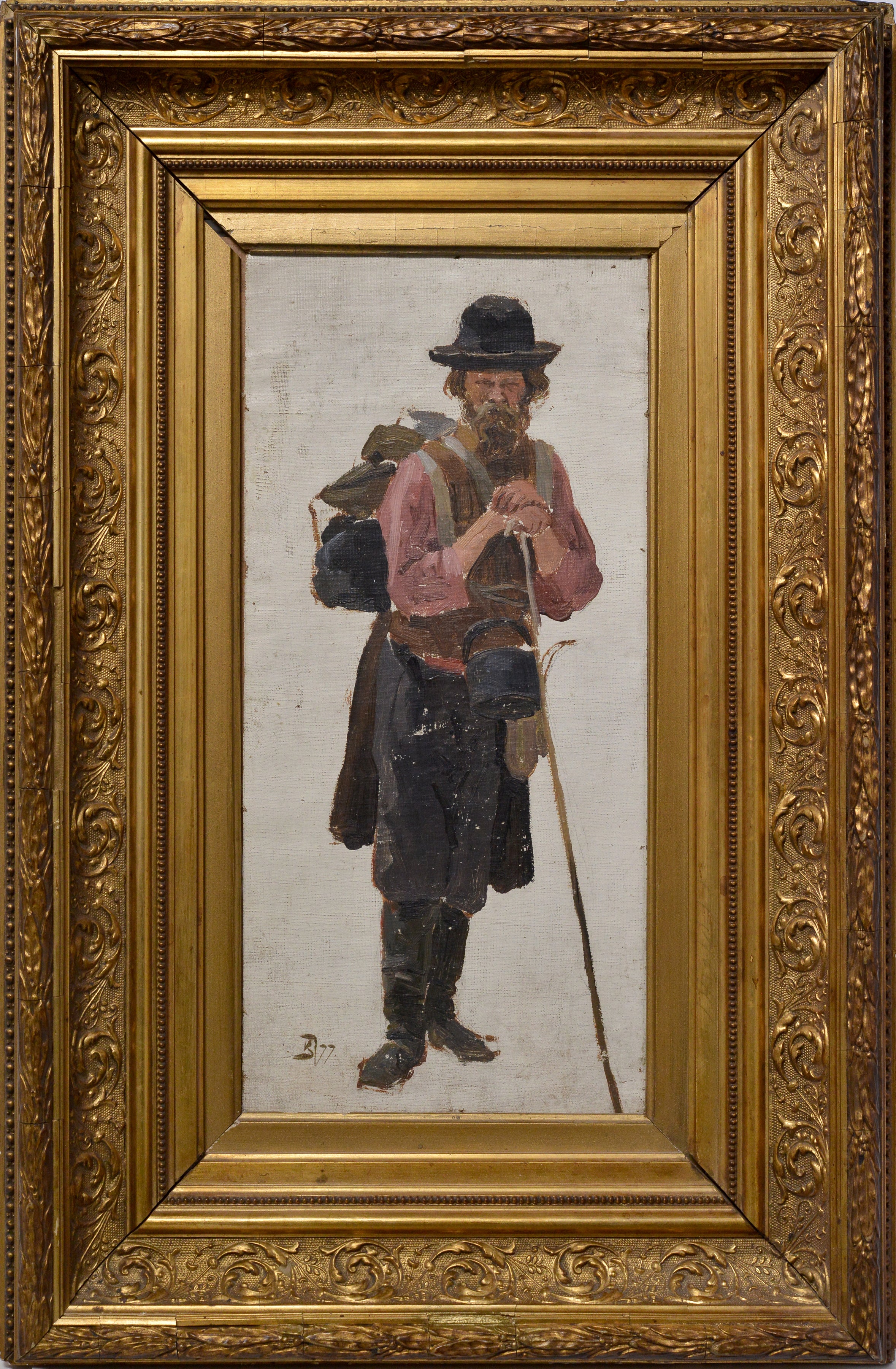 Rare 19th Century Russian Oil Portrait Bearded Man with Staff Signed Gilt Frame Sale