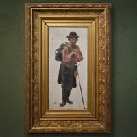 Rare 19th Century Russian Oil Portrait Bearded Man with Staff Signed Gilt Frame